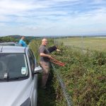 On Sunday 2nd August founder Simon Fewkes and some members of Bristol Airport Spotting met at Winters Lane to tackle the overgrown weeds, bushes and trees that were making viewing the runway difficult, after 2 hours of cutting, trimming and chopped along with stings, cuts, grazes and thorns we had managed to clear a 40 metre stretch of weeds and growth that now allows clear unobstructed views, some photos taken during and after the work clearly shows the extent of the work completed, a massive thanks to Gary Morris and Kevin Slade for their help. After this work it allowed room to put up a few posters advertising this years Aviation Fair.