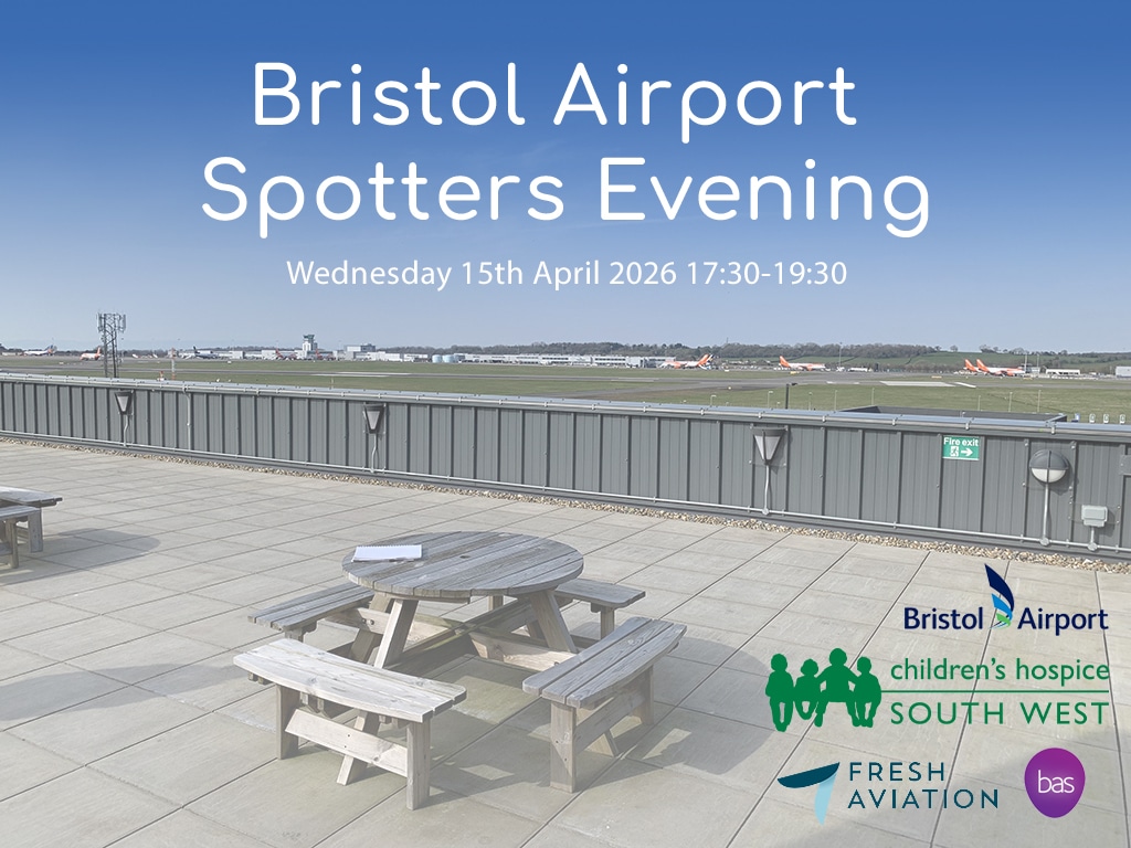 We are pleased to announce the First Spotters event of 2026 will take place on Wednesday 15th April 2026 between 17:30pm and 19:30pm. The event will take place on the roof terrace of the Bristol Airport administration building located on the south side of the airport, this building gives great views of the runway 27 touchdown as well as different background views of aircraft stands for photography or videography. The event will include free parking and tea/coffee will be available. Numbers are limited and there will be 60 tickets available which will be made available to purchase from Wednesday 25th March 2026 at 19.00pm.